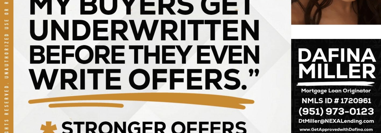 Hi, my name is Dafina Miller. I’m a Loan Officer with NEXA Lending LLC., offering personalized mortgage solutions, fast customized quotes, great rates and service with integrity.