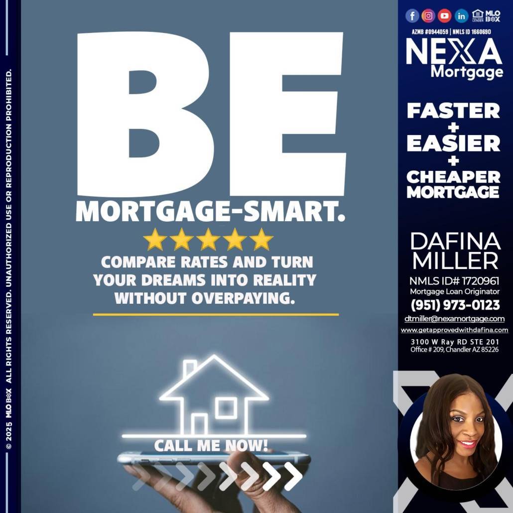 Hi, my name is Dafina Miller. I’m a Loan Officer with NEXA Mortgage LLC., offering personalized mortgage solutions, fast customized quotes, great rates and service with integrity.