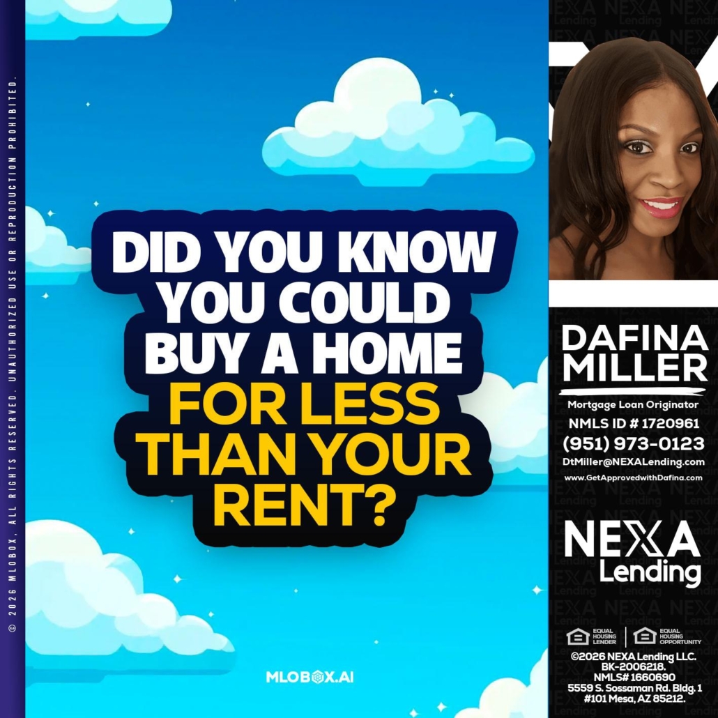 Hi, my name is Dafina Miller. I’m a Loan Officer with NEXA Lending LLC., offering personalized mortgage solutions, fast customized quotes, great rates and service with integrity.