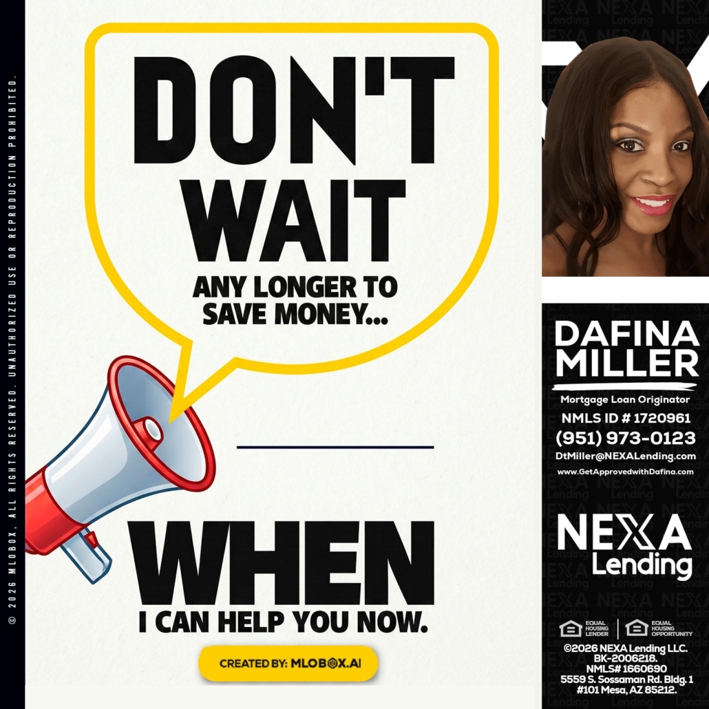 Hi, my name is Dafina Miller. I’m a Loan Officer with NEXA Lending LLC., offering personalized mortgage solutions, fast customized quotes, great rates and service with integrity.
