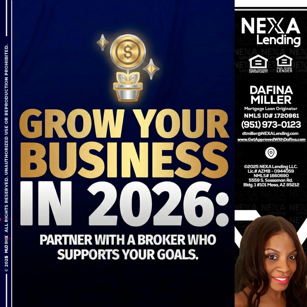 Hi, my name is Dafina Miller. I’m a Loan Officer with NEXA Lending LLC., offering personalized mortgage solutions, fast customized quotes, great rates and service with integrity.