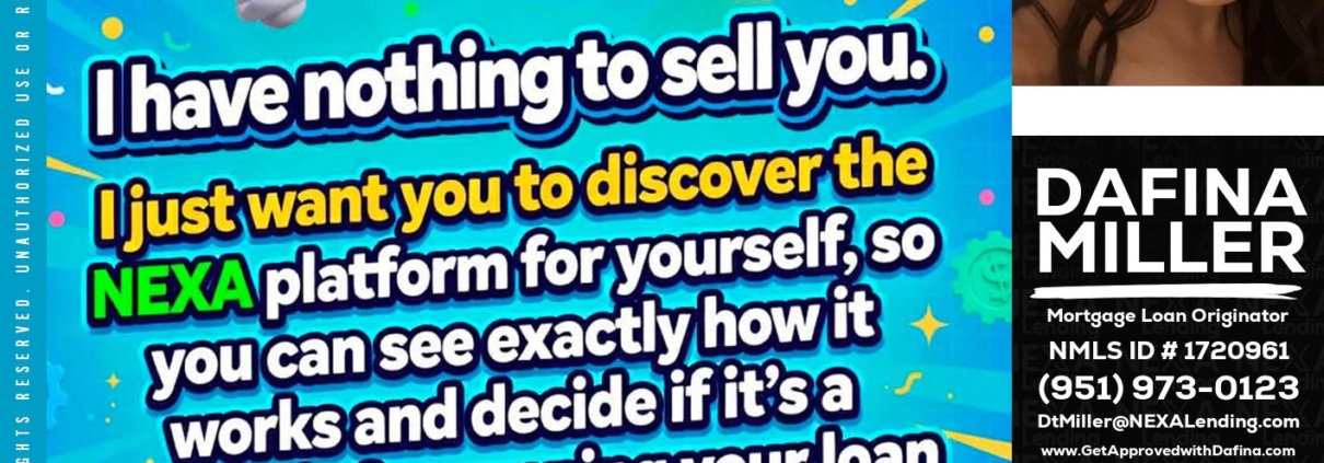 Hi, my name is Dafina Miller. I’m a Loan Officer with NEXA Lending LLC., offering personalized mortgage solutions, fast customized quotes, great rates and service with integrity.