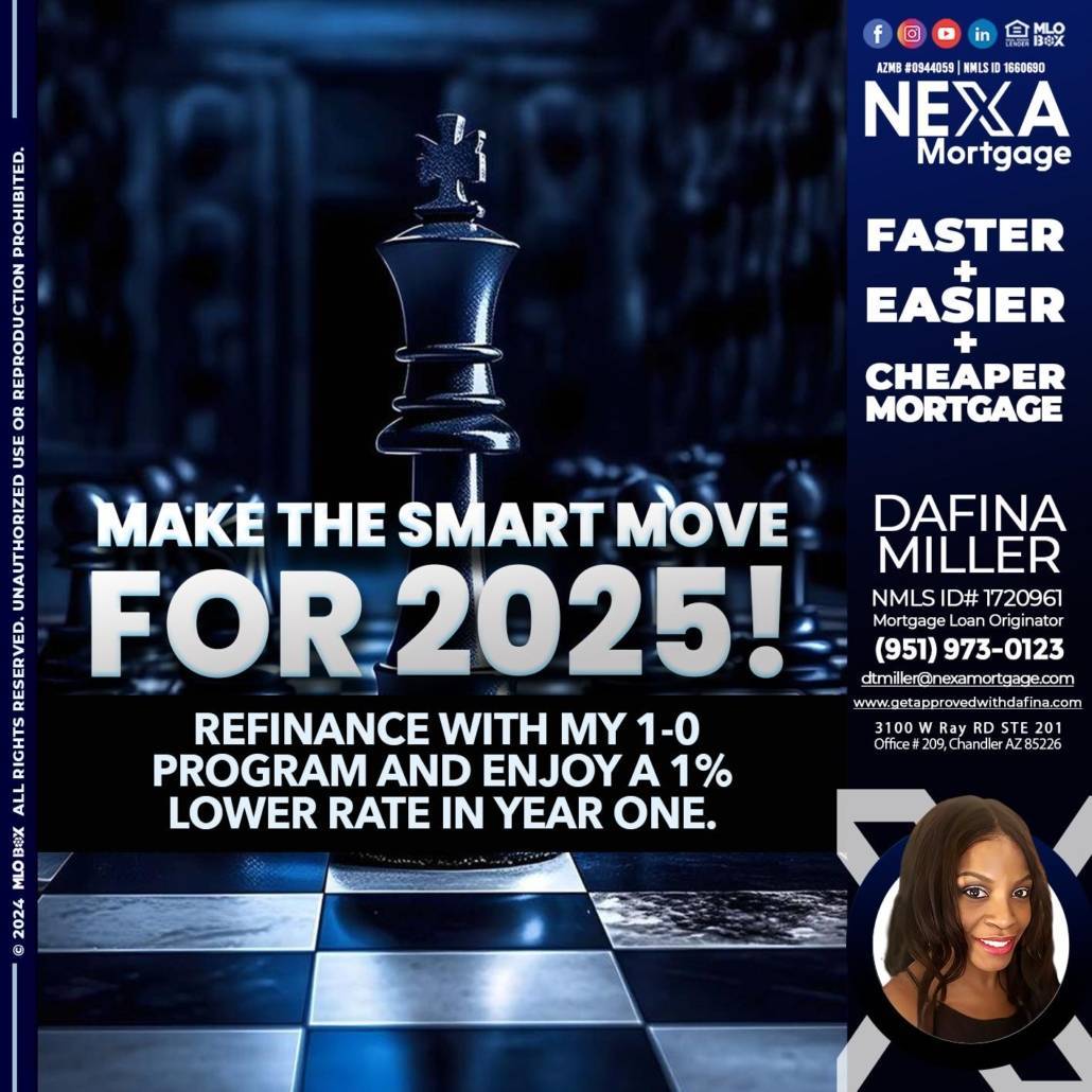 Hi, my name is Dafina Miller. I’m a Loan Officer with NEXA Mortgage LLC., offering personalized mortgage solutions, fast customized quotes, great rates and service with integrity.