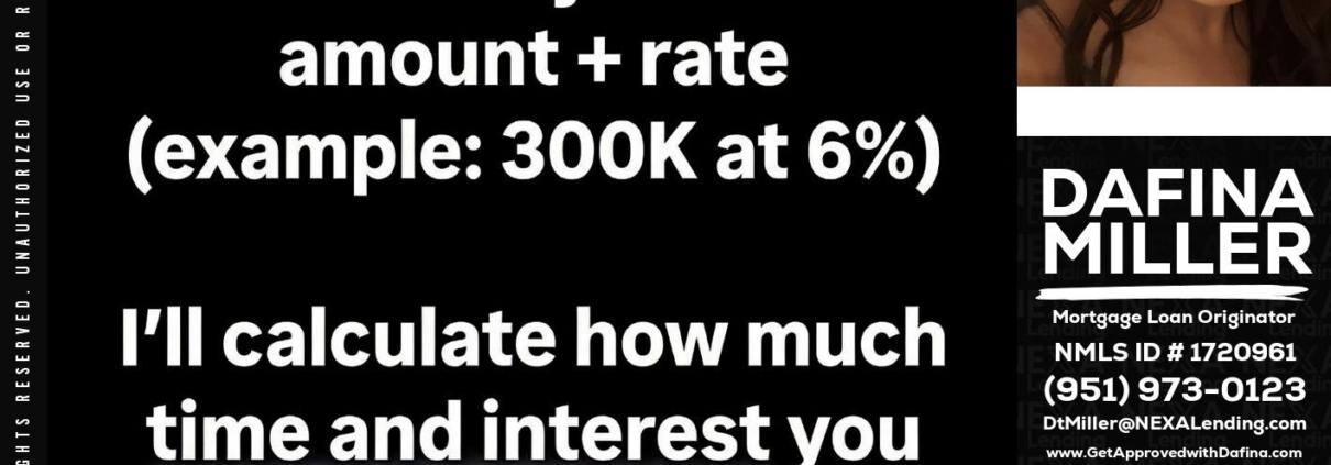 Hi, my name is Dafina Miller. I’m a Loan Officer with NEXA Lending LLC., offering personalized mortgage solutions, fast customized quotes, great rates and service with integrity.
