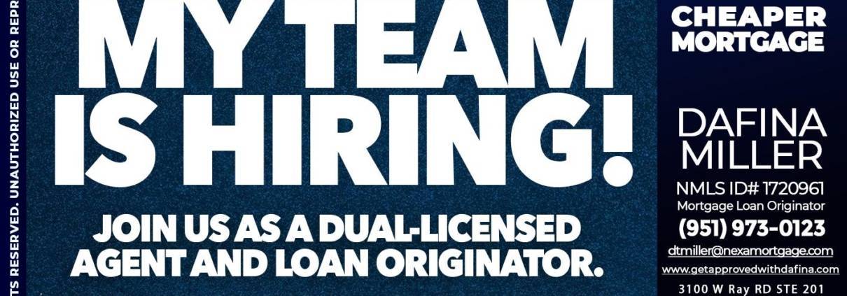 my team is hiring - Dafina Miller -Mortgage Loan OriginatorHi, my name is Dafina Miller. I’m a Loan Officer with NEXA Mortgage LLC., offering personalized mortgage solutions, fast customized quotes, great rates and service with integrity.
