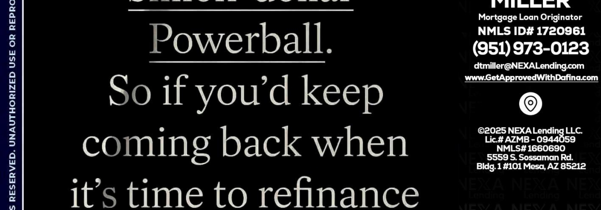 Hi, my name is Dafina Miller. I’m a Loan Officer with NEXA Lending LLC., offering personalized mortgage solutions, fast customized quotes, great rates and service with integrity.