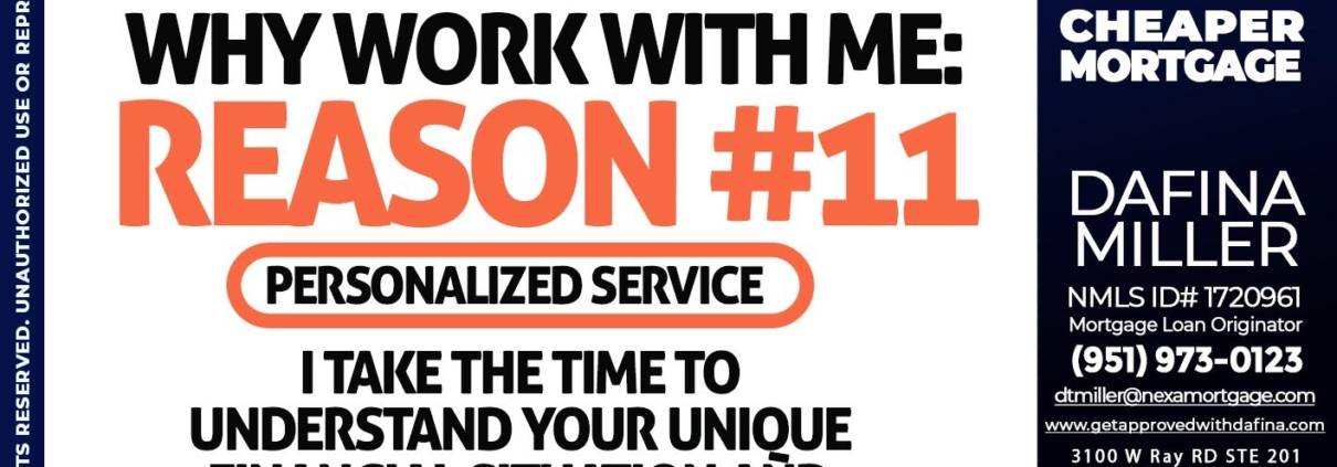 Hi, my name is Dafina Miller. I’m a Loan Officer with NEXA Mortgage LLC., offering personalized mortgage solutions, fast customized quotes, great rates and service with integrity.