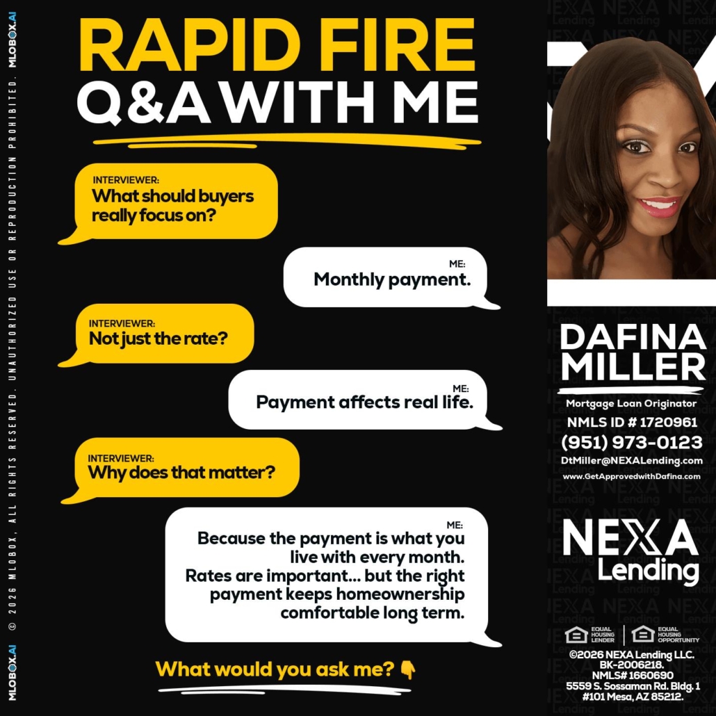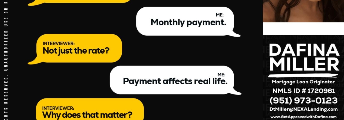 RAPID FIRE Q&A - Dafina Miller -Mortgage Loan OriginatorHi, my name is Dafina Miller. I’m a Loan Officer with NEXA Lending LLC., offering personalized mortgage solutions, fast customized quotes, great rates and service with integrity.