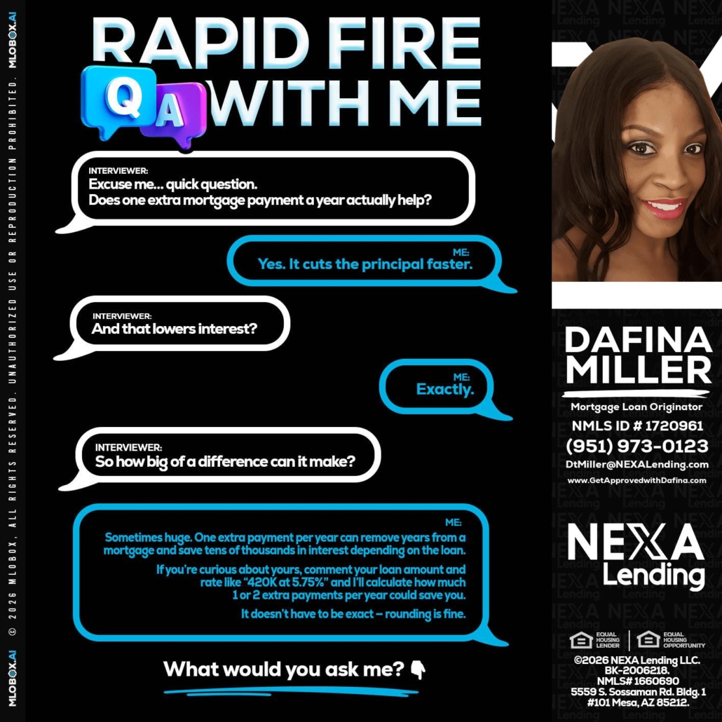 Hi, my name is Dafina Miller. I’m a Loan Officer with NEXA Lending LLC., offering personalized mortgage solutions, fast customized quotes, great rates and service with integrity.