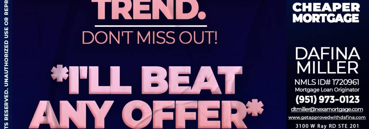 Hi, my name is Dafina Miller. I’m a Loan Officer with NEXA Mortgage LLC., offering personalized mortgage solutions, fast customized quotes, great rates and service with integrity.