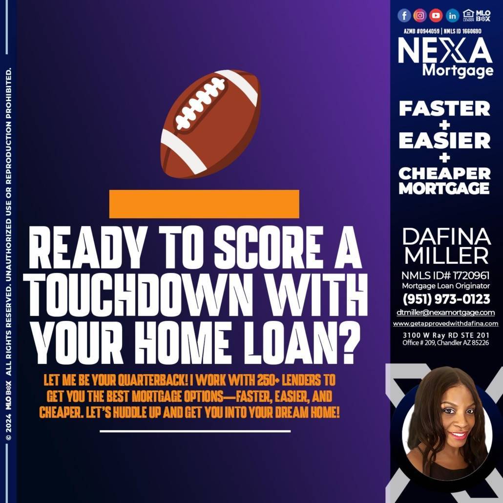 Hi, my name is Dafina Miller. I’m a Loan Officer with NEXA Mortgage LLC., offering personalized mortgage solutions, fast customized quotes, great rates and service with integrity.