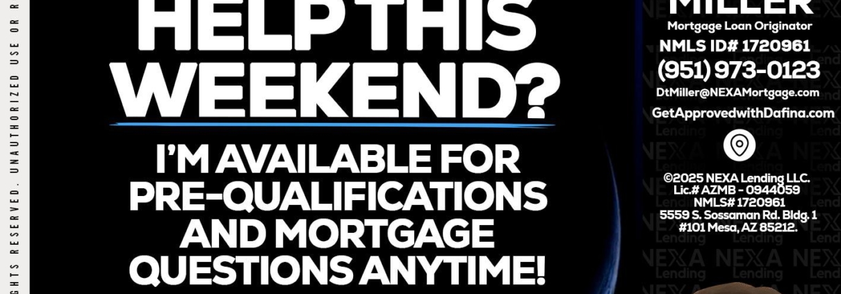 Hi, my name is Dafina Miller. I’m a Loan Officer with NEXA Lending LLC., offering personalized mortgage solutions, fast customized quotes, great rates and service with integrity.