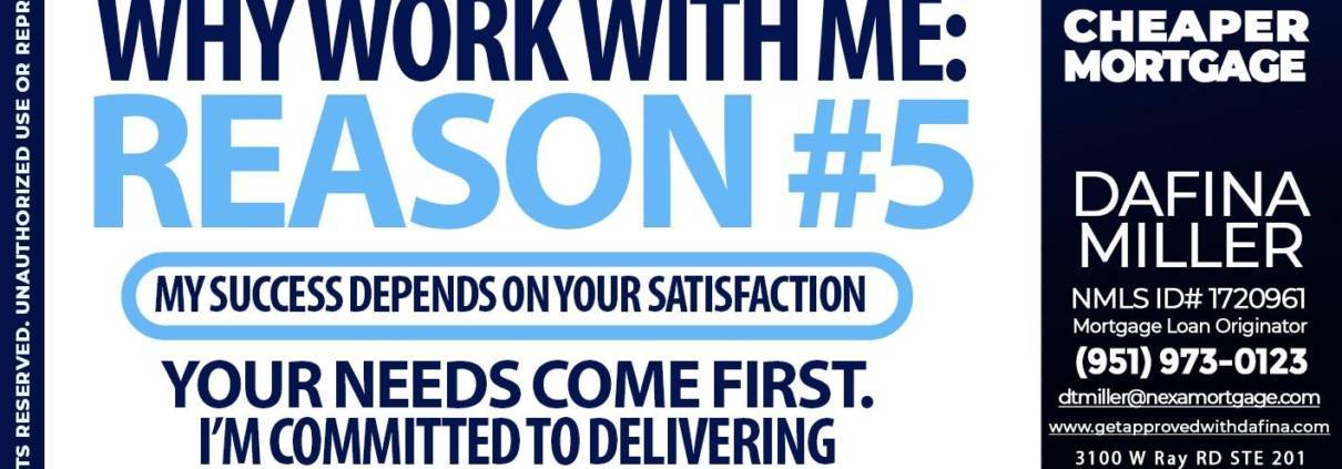 Hi, my name is Dafina Miller. I’m a Loan Officer with NEXA Mortgage LLC., offering personalized mortgage solutions, fast customized quotes, great rates and service with integrity.