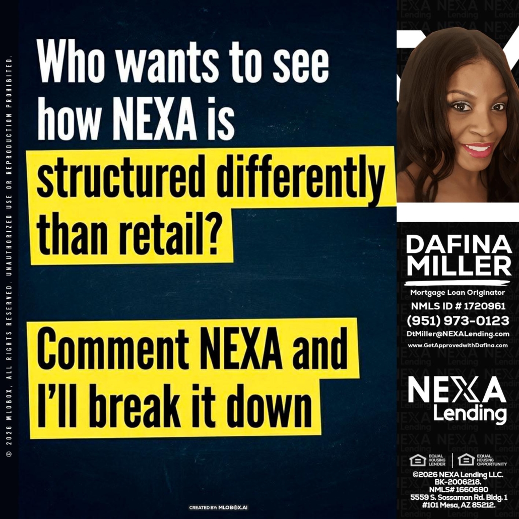 Hi, my name is Dafina Miller. I’m a Loan Officer with NEXA Lending LLC., offering personalized mortgage solutions, fast customized quotes, great rates and service with integrity.