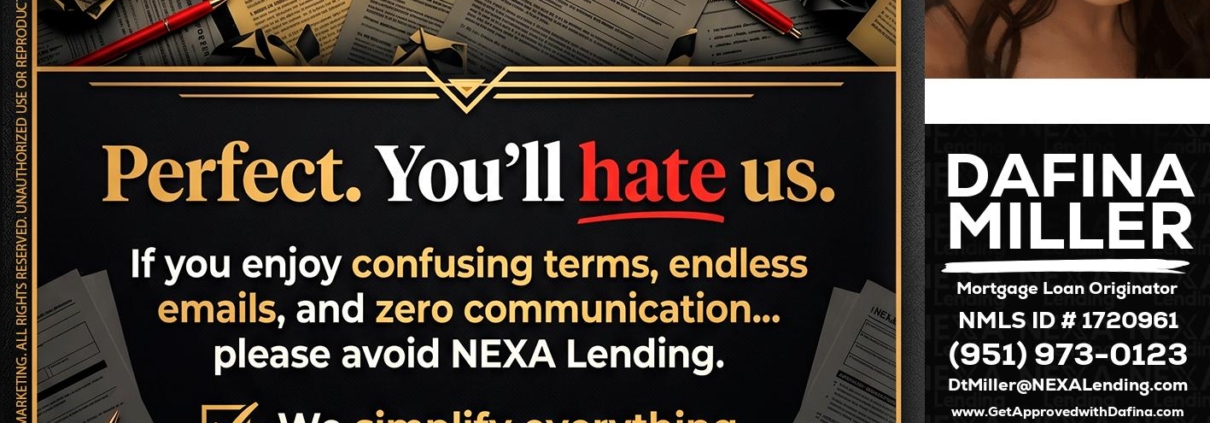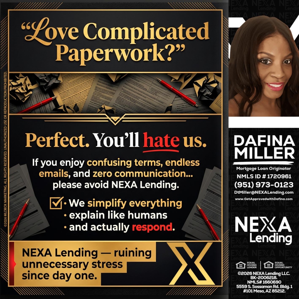 Hi, my name is Dafina Miller. I’m a Loan Officer with NEXA Lending LLC., offering personalized mortgage solutions, fast customized quotes, great rates and service with integrity.